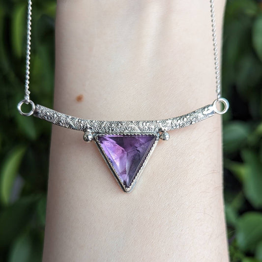 925 Sterling Silver Amethyst Spike Feathered Pendant Necklace - 16"