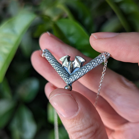 925 Sterling Silver Dainty Bat Pendant Necklace - 16"