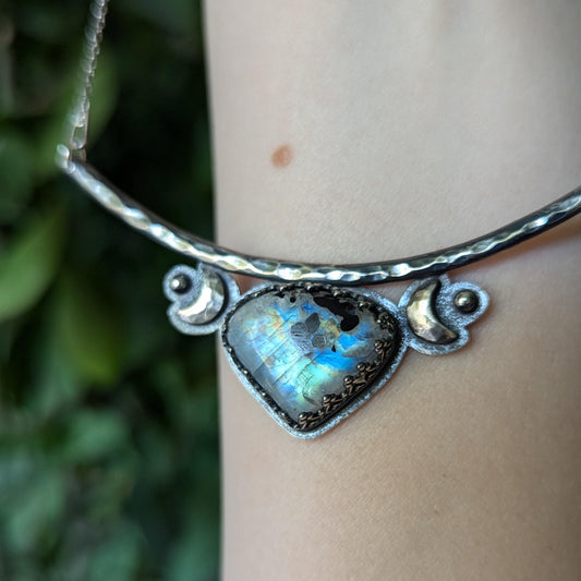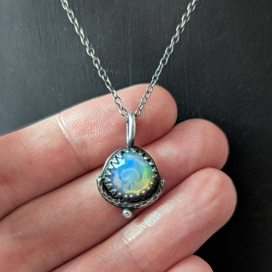 925 Sterling Silver Dark Celestial Rainbow Moonstone with Black Tourmaline Pendant Necklace - 16"