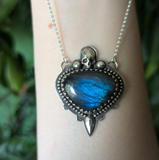 925 Sterling Silver Blue Labradorite Skull Pendant Necklace - 18"