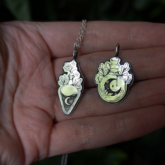 925 Sterling Silver Celestial Potion Bottle Pendant Necklace 18"