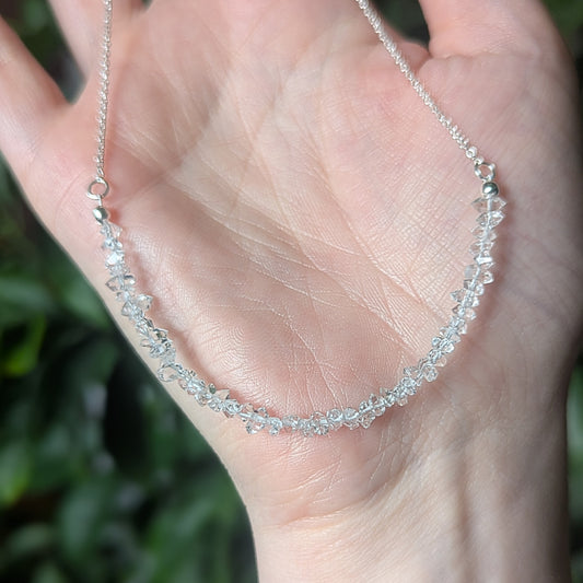 925 Sterling Silver Dainty Herkimer Diamond Choker Necklace | 14-16"