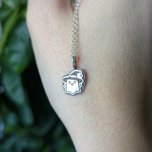 925 Sterling Silver Cute Ghost Pendant Necklace 18"