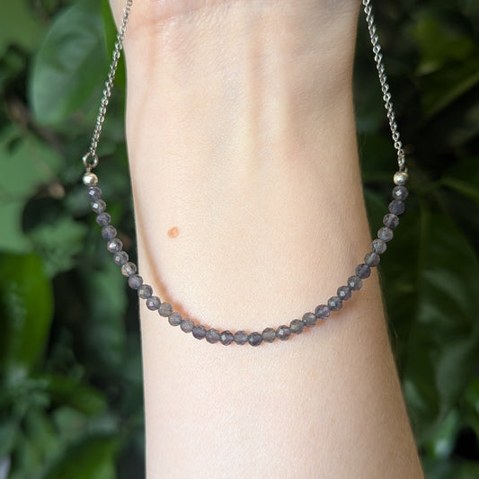 925 Sterling Silver Faceted Iolite Dainty Choker Necklace | 15-17"