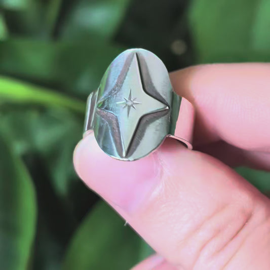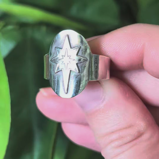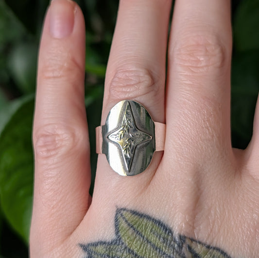 Sterling Silver Celestial Star Wide Band Saddle Ring