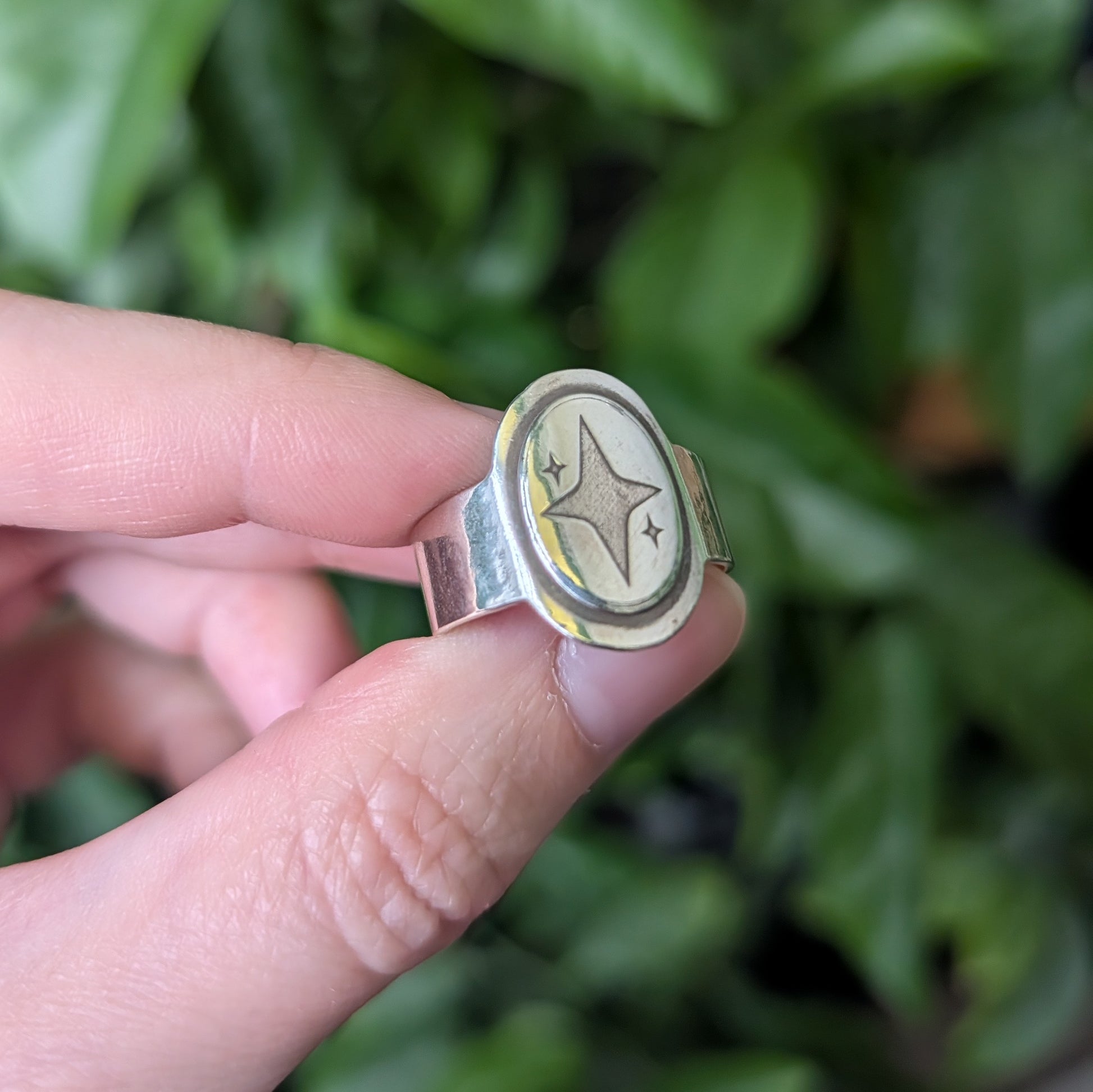 Sterling Silver Celestial Star Wide Band Saddle Ring