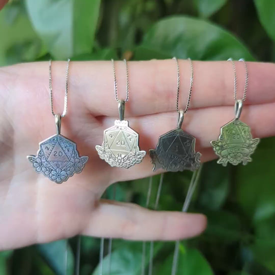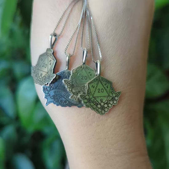 These D20 dice pendant necklaces were originally from the Faraway Forest Collection! There are four to choose from!